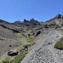 Went up through the Old Chute. Steaming sulfurous fumaroles, rock and ice cleaving cliffs. Steep upper chute with sketchy footing. Intense.