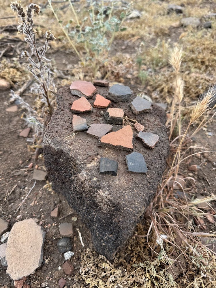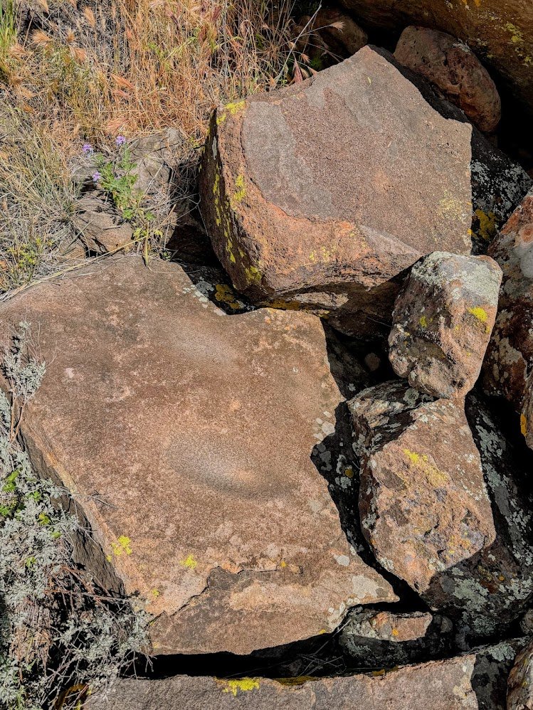 Day 1- visited Perry Mesa in the Agua Fria National Monument. This plateau has 7 or 8 pueblo ruins and many petroglyphs. I visited Pueblo La Plata, then ventured onto rugged roads toward Baby Canyon. Maybe I took the wrong road, because my rental SUV could not handle it. So I stopped and just headed down a side canyon and found some petroglyphs and a double metate!